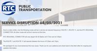 RTC says it is working with Keolis to put out a modified transit service with a focus on the busiest routes. Managers will be driving zone around the RIDE routes to do wellness checks for anyone at a bus stop and offer water and emergency transportation if necessary.