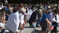 Friday morning, local medical professionals joined together to kneel for nine minutes to show support for the nationwide movement, 'White Coats for Black Lives.'