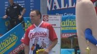 Joey "Jaws" Chestnut confronted 20 other men to win his 11th title at the Nathan's Famous Hot Dog Eating Contest Wednesday afternoon. The renowned competitive eater from San Jose, California, chomped down a record 74 franks and buns, surpassing the previous mark of 72 dogs he downed last year.