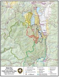The Forest Service says the lightning-sparked Slink Fire is now 26,752 acres and is 84% contained. Â