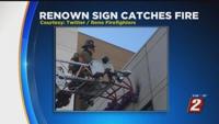 Firefighters responded to a small fire on a sign outside the Center for Advanced Medicine B skyway on the Renown campus Tuesday.