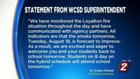 In a statement, WCSD Superintendent Dr. Kristen McNeill, said "As a result of the Loyalton Fire and the deteriorating air quality, we have made the decision that we can not safely reopen our school district for our students and staff."