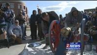 Once the pieces of the cannon are prepped, the painting will begin. Bobick says the silver pieces will be the first to get painted. The larger blue parts will likely get their paint Thursday or Friday. The Fremont Cannon is expected to be completed sometime, next week. It will go on display at the Cashell Fieldhouse but it will also make appearances both on and off-campus, for different functions. It will likely make a few appearances at Wolf Pack basketball games.