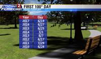 Looking back at the past several years we usually have our first 100 degree day towards the end of June, but this year we're a week or so behind. Not that anyone is complaining though right? Temperature dial is set on hot this week, if not extra hot. With warm afternoons it will also be warm in the morning with lows in the mid 60’s and a few clouds. High pressure will keep us hot, and with plenty of heat storms are possible by Thursday. While it will be hot this week, I don’t think it will be quite be hot enough to break any records at the Reno Airport, we would have to make it up to about 105 degrees to do that.