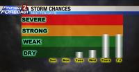 Storm chances go up as the week goes on. As the ridge strengthens out west the air will become more ready for storms to develop, with dry lightning a possibility, especially in the beginning. Strength of the storms does not appear to be all that impressive, but they could produce some lightning and gusty winds. Have a great week and stay cool.