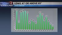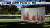 We’ve had eight days so far at the Reno Airport with temperatures in the hundreds, and we only need to hit twelve to tie the record for most 100 degree days in a year. Keep in mind we still have much of August to go through as well! Overnight lows are also something to talk about as we’ve had about twenty mornings this summer with lows at or above 65 degrees, that is impressive as well.  Usually the airport is in the 50’s at night in June and parts of July. Not this summer though, it's been warm for sure.Â