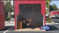 They showed a live demo of residential sprinkler activation, which could help when battling home fires.