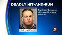 Police say Perry then left his car and ran away without helping the people inside the vehicles. Police later found and arrested him.