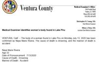 Ventura County sheriff’s officials confirmed at a news conference on Monday that the body found floating in Lake Piru was the 33-year-old Rivera.