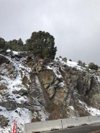 Concrete barrier was placed to help keep rockfall from the travel lanes. NDOT and contractor Sierra Nevada Construction also shifted traffic lanes away from the rockfall area. Travel speeds will be reduced through the area. The lane shifts and reduced traffic speeds are anticipated to be in place until snow melts and excess storm-related soil saturation has evaporated for further stabilization of the roadside slope. At that point, remaining boulders and loose earth is planned to be removed from the roadside slope.