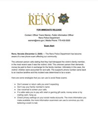 Reno Police say an unknown person has been calling numbers and saying they have kidnapped the victim's family member and asking for money - but this is not true.