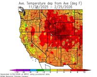 The difference is even more significant since the end of November, with eastern Nevada seeing average temperatures about several degrees above normal over the past 90 days.