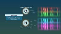 The collision between the sun’s charged particles and the earth’s atmosphere creates a chemical reaction leading to different colors. Oxygen creates a red or green light, and Nitrogen leads to a pink or blue light.