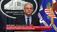 The announcement followed Biden's acknowledgement Thursday morning that a document with classified markings from his time as vice president was found in his personal library, along with other documents found in his garage. Garland said Biden's lawyers informed the Justice Department Thursday morning of the discovery of a classified document at Biden's home, after FBI agents first retrieved other documents from the garage in December. It was disclosed on Monday that sensitive documents were found at the office of his former institute in Washington.