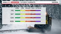 Snow is likely at Donner throughout the duration of the storm. The high Sierra above 7,000' will see 1-3 feet of snow, with 6-10 inches possible at lake level. Mono County above 8,000' will see up to four feet of snow.Â