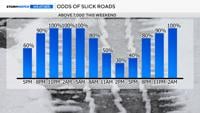 This graphic begins Friday evening and goes through the weekend. Roads will be worse at night than during the day. However, snow will still accumulate on roadways at times during the day as well. Saturday night into Sunday morning will be the most dangerous part of the storm.