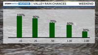The track of the atmospheric river is crucial in this weekend’s forecast. A slight wobble to the north by 200 miles would mean more wind than rain in the valley, but a track along I-80 would mean soaking rain and less wind. The models are trending further south along I-80 with each run.