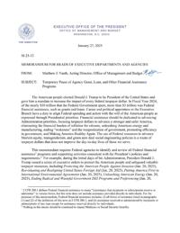 Vaeth wrote that “each agency must complete a comprehensive analysis of all of their Federal financial assistance programs to identify programs, projects, and activities that may be implicated by any of the President’s executive orders." He also wrote that the pause should be implemented “to the extent permissible under applicable law.”