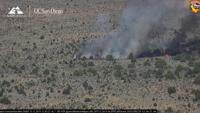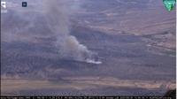 Thick white smoke can be seen coming from the fire, which appears to be along a mountain, as a few fire cameras show.Â