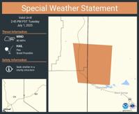The storm is expected to bring wind gusts up to 50 mph and hail up to half an inch in diameter.