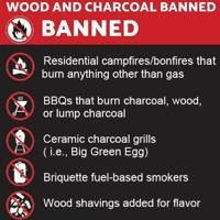 The ban restricts the use of all residential campfires, bonfires, charcoal barbecues, and any outdoor cooking involving solid fuel such as wood or lump charcoal.