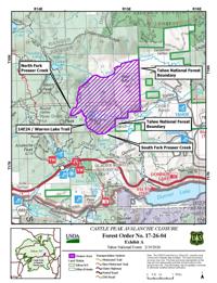 The closure applies to National Forest lands between Castle Peak and the South Fork of Prosser Creek. It prohibits going into or being on any National Forest System lands within the closed area, as shown on the official closure order map, and being on any trail within the closure area.