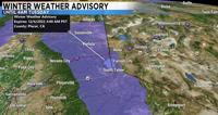 A winter weather advisory continues for the mountains until 4am on Tuesday, with 6 to 12" of new snow in the Sierra likely.