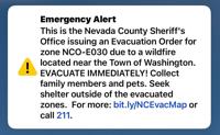 An emergency alert was sent around 5 p.m. on Wednesday for an Evacuation Order for zone NCO-E030.