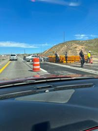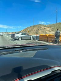 A car crashed into a barrier on the highway.Â