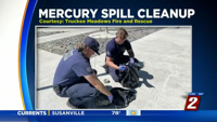 Firefighters say they confined employees and library patrons to the building while they cleaned up the spill.