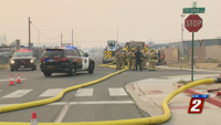 The owner of the storage containers says they believe only furniture was inside, but was hard to tell because of how charred it was. Officials say the office building was filled with some type of metal, which stopped the fire from moving to its interior.