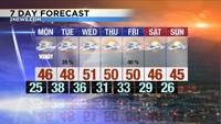 The strongest winds are found in the upper levels of the atmosphere called the jet stream. A jet max is a part of the jet stream with enhanced wind speeds. The jet stream will be aimed at northern California Monday, making wind speeds at the surface even stronger. A strong jet stream aloft does not always correlate to strong winds at the surface, but this time around the forecast is coming together for down sloping winds. Down sloping winds accelerate as they rush down the mountains. Winds speeds will still be strong on Tuesday, but slowly improving throughout the day as the storm moves east. Highs this week will be in the 40’s to about 50 degrees. Make sure to bring your Christmas decorations inside if you don’t want to lose them in the wind storm.