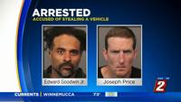 Sparks Police say they've arrested two men accused of robbing several people, firing a shot in the air and then stealing their car on Sunday night.
