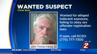 Falvey was wanted for Fail to obey laws and regulations regarding registration of a sex offender as well as Indecent or obscene exposure (first offense)Â