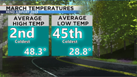 In comparison to last March, according to the National Weather Service, the average high temperature was about 63 degrees. The average high of temperatures this March so far is 48 degrees.