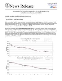 About 1.42 million Americans were collecting traditional unemployment benefits in the week of April 9, the fewest since February 21, 1970.