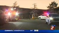Reno Fire says it was reported around 8:15 p.m.. and that the flames spread to the brush on the hill because of how close the car was.