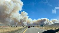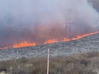 According to Mono County officials, the fire jumped Highway 395 and is now about a quarter mile from reaching Lake Crowley. The left (northern) flank of the fire is approaching structures along Highway 395.