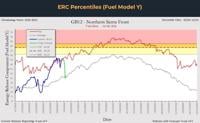 This chart shows how dry our fuels are, with similar conditions to early June opposed to April. Thankfully, some much needed rain will lower energy release values back to normal by the end of the week.