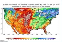 Another product from NASA shows the percentage of available soil moisture, leaving the Sierra with some water, but hardly anything east of the mountains.