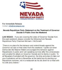 The Governor’s Communications Director, Meghin Delaney released this statement today on behalf of Sisolak: