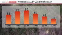 Wind speeds will range from 30 to 40 mph on Wednesday into Thursday, with gusts up to 60 mph for most locations. Wind prone areas like Washoe Valley and along 395 could see wind gusts up to 80 mph.