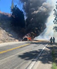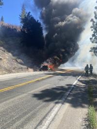 Crews were worked Highway 50 east of Kyburz due to a semi-truck fire that has spread into the Eldorado National Forest.Â