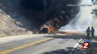 The fire started around 10:30 a.m. on Friday and officials say it spread to vegetation on both sides of the highway.Â
