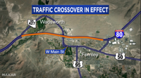 A temporary traffic crossover will begin the morning of March 29 on I-80 in Fernley as the Nevada Department of Transportation continues a year-long project to retrofit interstate bridges.