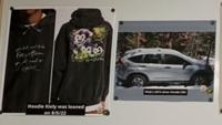 Her mom says there is a dream-catcher-type medallion hanging from the car's mirror. And there is a sticker of a ram under the rear windshield. There are some scratches on the front end of the car.