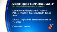 As part of the investigation, Truckee Police, along with the Placer County Sheriff's Office and regional law enforcement partners from the Placer County Probation Department and the Auburn Police Department (CA) conducted sex offender compliance sweeps throughout the Truckee/North Tahoe area.