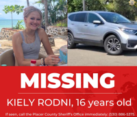 ‼️TIP LINE SET UP FOR INFORMATION LEADING TO 16-YEAR-OLD KIELY RODNI‼️Anyone with any information can call (530) 581-6320 Option 7. You can remain anonymous.