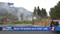 Fire crews say workers cutting pavers with power saws ignited the Kinney Fire in south Reno on Monday.