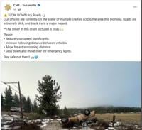 Crashes can still occur when there is only a dusting of snow. Chain controls were in place along I-80 early Wednesday morning, but have since been lifted.